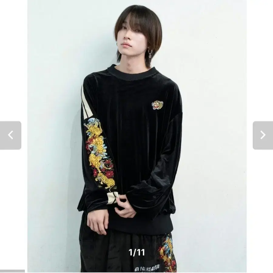 츄우카타베타이 Tiger track sweat/black L 사이즈 벨로아 맨투맨 풍성한 벨로아 원단의 상의입니다. 가슴과 팔의 자수가 포인트입니다. 소매와 밑단이 조여진 디자인이라 오버 사이즈라도 귀여운 실루엣이 됩니다. [ L ] 기장 69 가슴 너비 65 어깨 너비 71 소매 길이 65 추천 신장 165cm~175cm