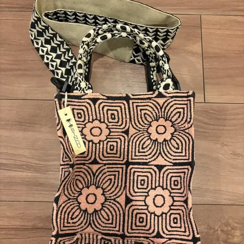 나고야의 BLUE BLUE에서 구매했습니다! - 색상: 핑크와 블랙의 기하학 패턴 - 소재: 패브릭 소재 - 내부 구조: 두 개의 컴파트먼트 - 스트랩: 조정 가능한 스트랩 - 디자인: 꽃무늬와 기하학 패턴 - 사이즈: 소형