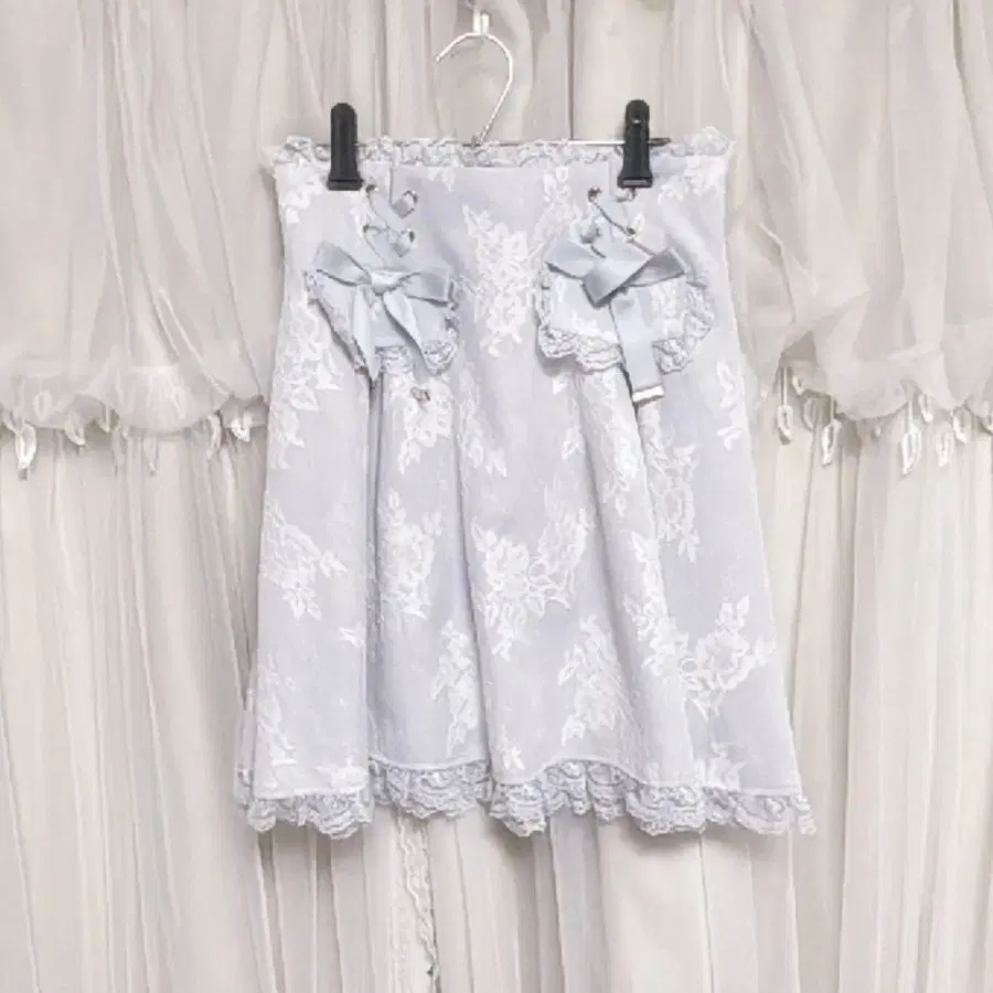 로지타 ROJITA 스커트 레이스업 리본 레이스 프릴 스카이블루 양산형 지뢰계