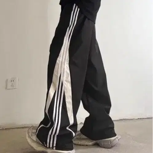 사이드 라인 와이드 팬츠 나일론 팬츠 트랙 팬츠