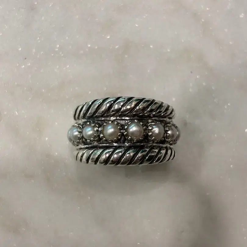 비쥬맘 실버 925 로프 디자인 펄 반지 11호 새상품
