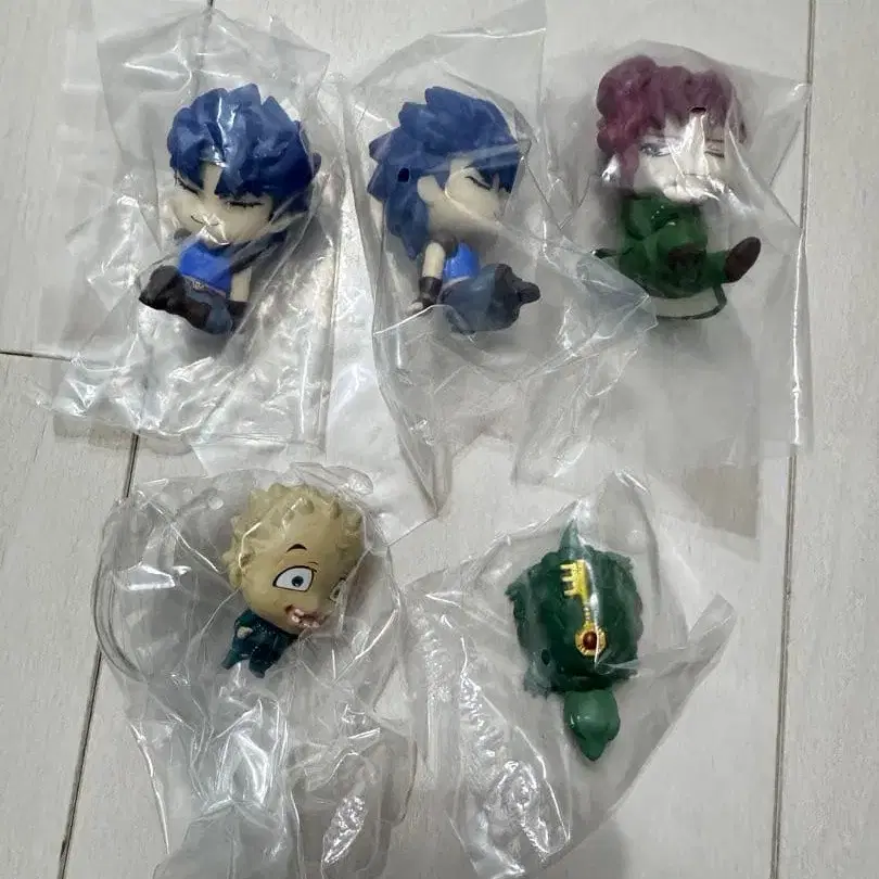 죠죠의 기묘한 모험 캐릭터가 모두 모인 5개의 미니 피규어 세트, 미개봉 상태의 플라스틱 재질.