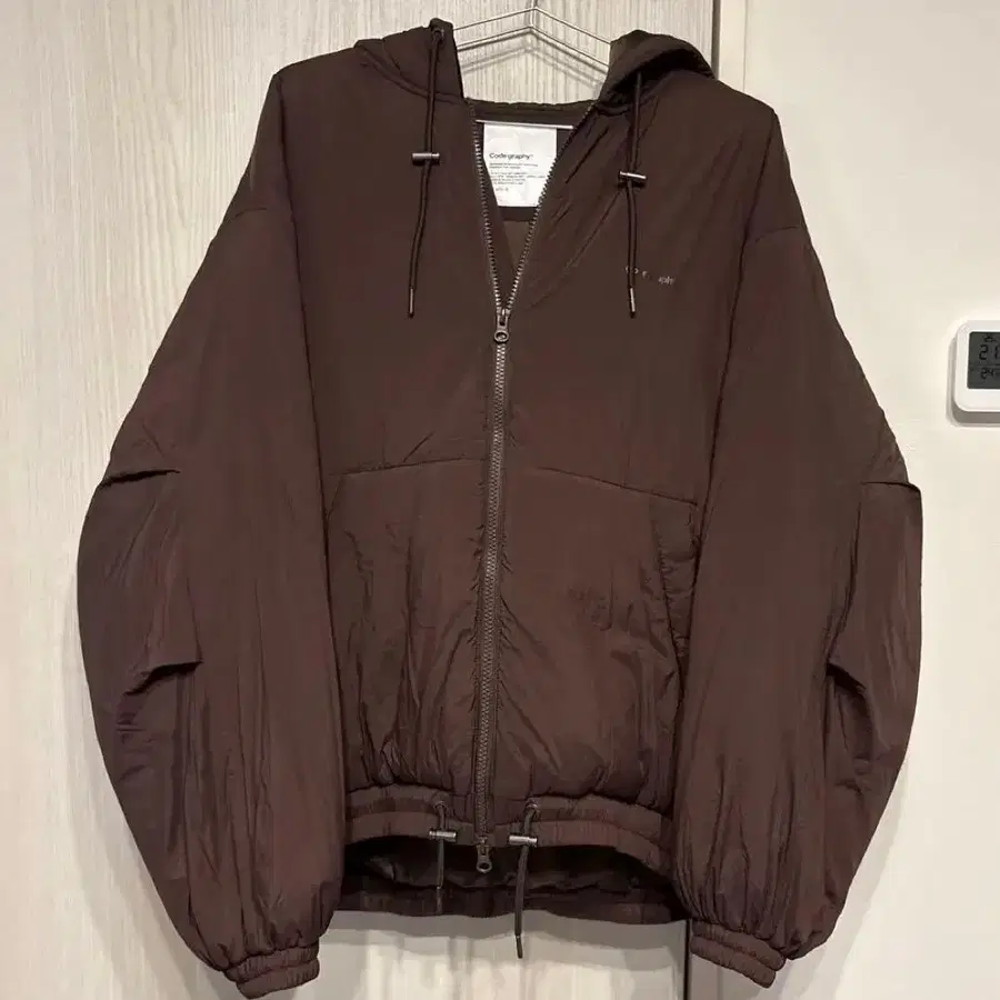 후드 부착 브라운 다운 자켓, 벌룬 실루엣으로 스타일리시. 한국