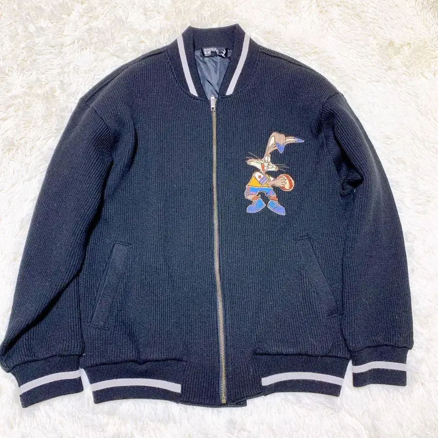 자동 번역되었어요. 원문보기[ 레어 ] 록키래빗 니트 블루종 L 캐릭터 자수 바스켓 90s