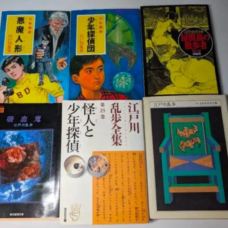 에도가와 란포 전집, 미스터리 작품을 수록한 전 6권 세트. - 타이틀: 에도가와 란포 전집 제23권 괴인과 소년 탐정 - 타이틀: 에도가와 란포 전집 제24권 흡혈귀 - 타이틀: 에도가와 란포 전집 제25권 악마 인형 - 타이틀: 에도가와 란포 전집 제26권 소년 탐정단 - 타이틀: 에도가와 란포 전집 제27권 지옥의 광대 - 저자: 에도가와 란포 방문해 주셔서 감사합니다. 중고품이므로 사진으로 판단하신 후 검토해 주세요. 즉시 구매 OK! 무료배송!