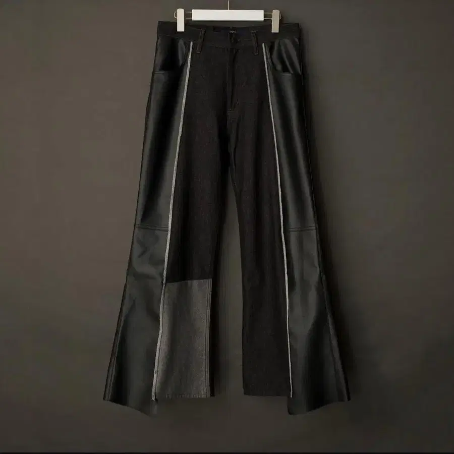 데님과 가죽의 이종 소재 믹스로, 유니크한 스타일의 스트레이트 데님 팬츠 shikitari.official의 PATCHWORK FLARE DENIM입니다. - 정가 - Black : 21,600엔 - 사이즈 - M 사이즈 ( 권장 신장目安~176cm ) 허리: 80.0cm 밑위: 24.0cm 인심 ( 데님 부분 ) : 72.0cm 인심 ( 가죽 부분 ) : 77.0cm 힙: 102.0cm 허벅지 둘레: 31.0cm 밑단 폭: 32.5cm
