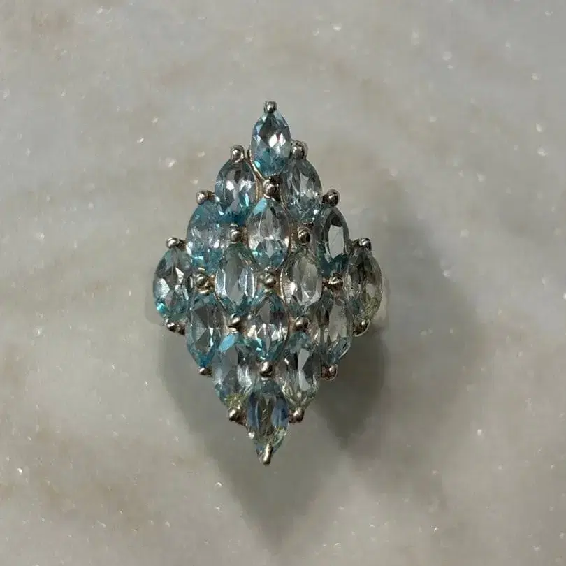 비쥬 마무 블루 토파즈 반지 새상품 미사용으로 소중히 보관하고 있었습니다. - 보석 색상: 블루 토파즈, 눈의 여왕 같은 아름다운 스카이블루 - 디자인: 다이아몬드 모양 - 소재: 실버 - 보석 모양: 페어 쉐이프 - 보석 개수: 다수 방문해 주셔서 감사합니다.