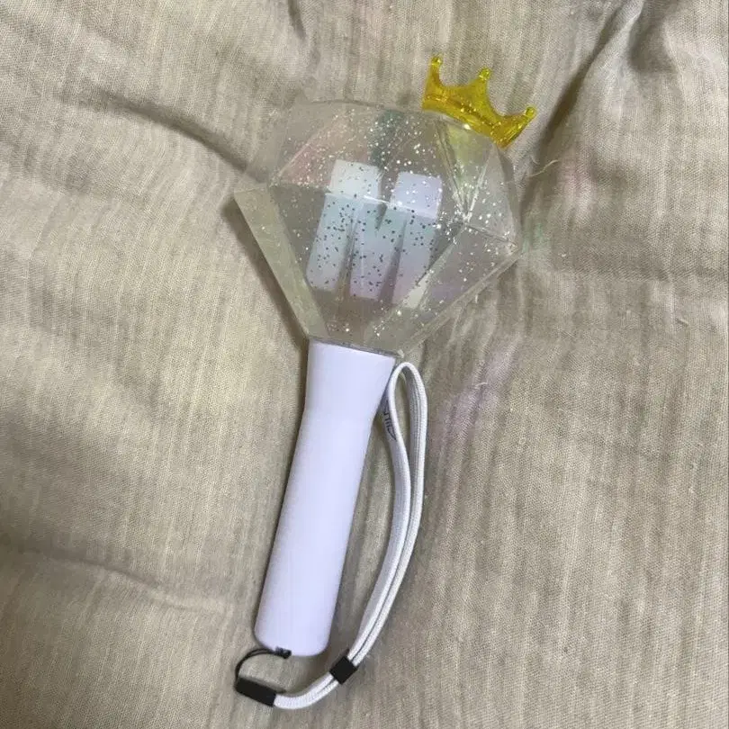 M!LK 초대 밀크 크리스탈 응원봉입니다. 몇 번 사용했지만, 라이트 부분에 흠집이나 얼룩은 없습니다. 손잡이 부분이 약간 노랗게 변색되었습니다. 배터리를 빼고 발송합니다. 즉시 구매 O