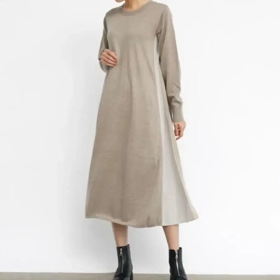 stylemixer 니트 롱 원피스 플레어 슬리브 리브 베이지