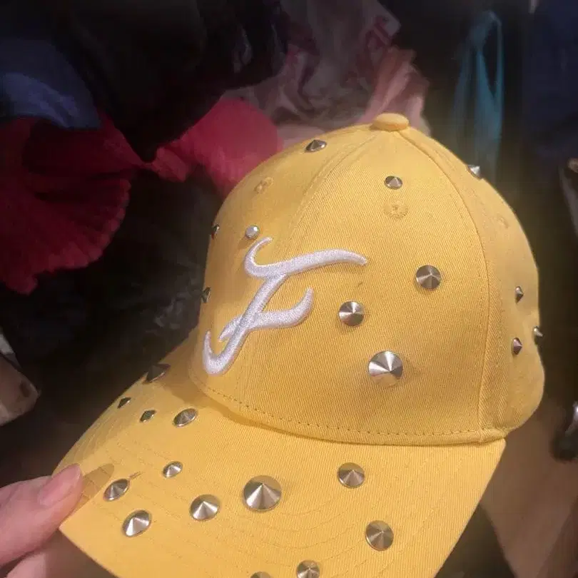 옐로우 컬러 캡에 실버 스터드가 장식된 디자인. - 색상: 노랑 - 디자인: 스터드 포함 - 스터드 색상: 실버 O 오사카점에서 구매했습니다. 이미 온라인에서 완판된 인기 상품입니다. 몇 번 착용했지만 눈에 띄는 얼룩은 없습니다.