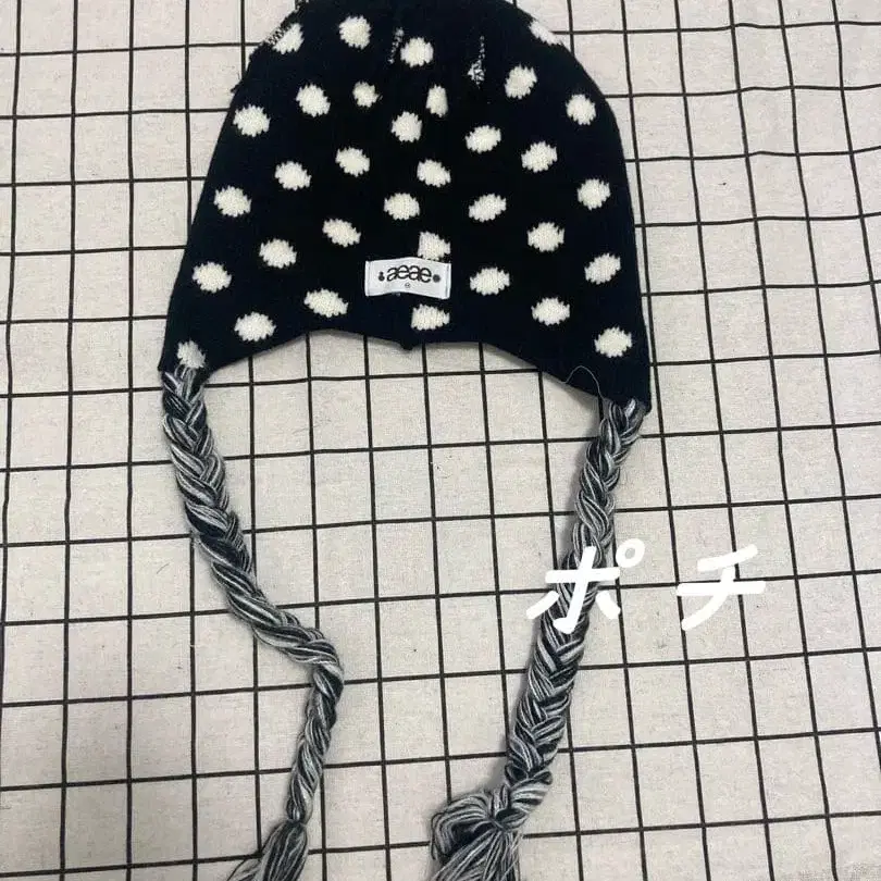 AEAE 도트 무늬 니트 모자 귀도리 포함 블랙/화이트