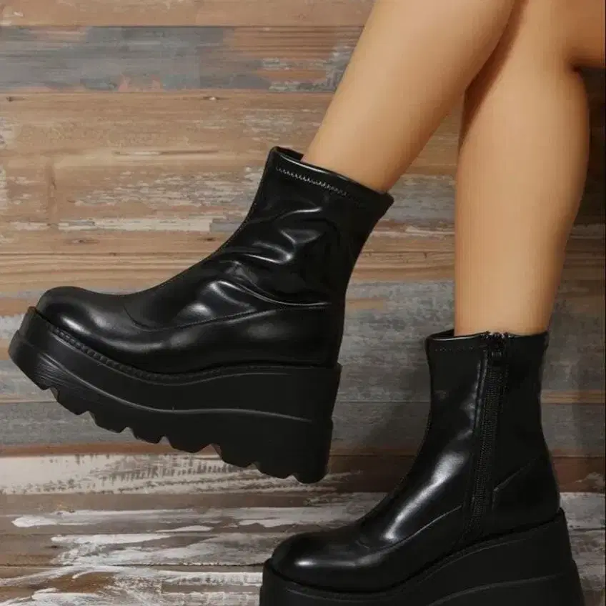 블랙 통굽 숏부츠 지퍼 포함