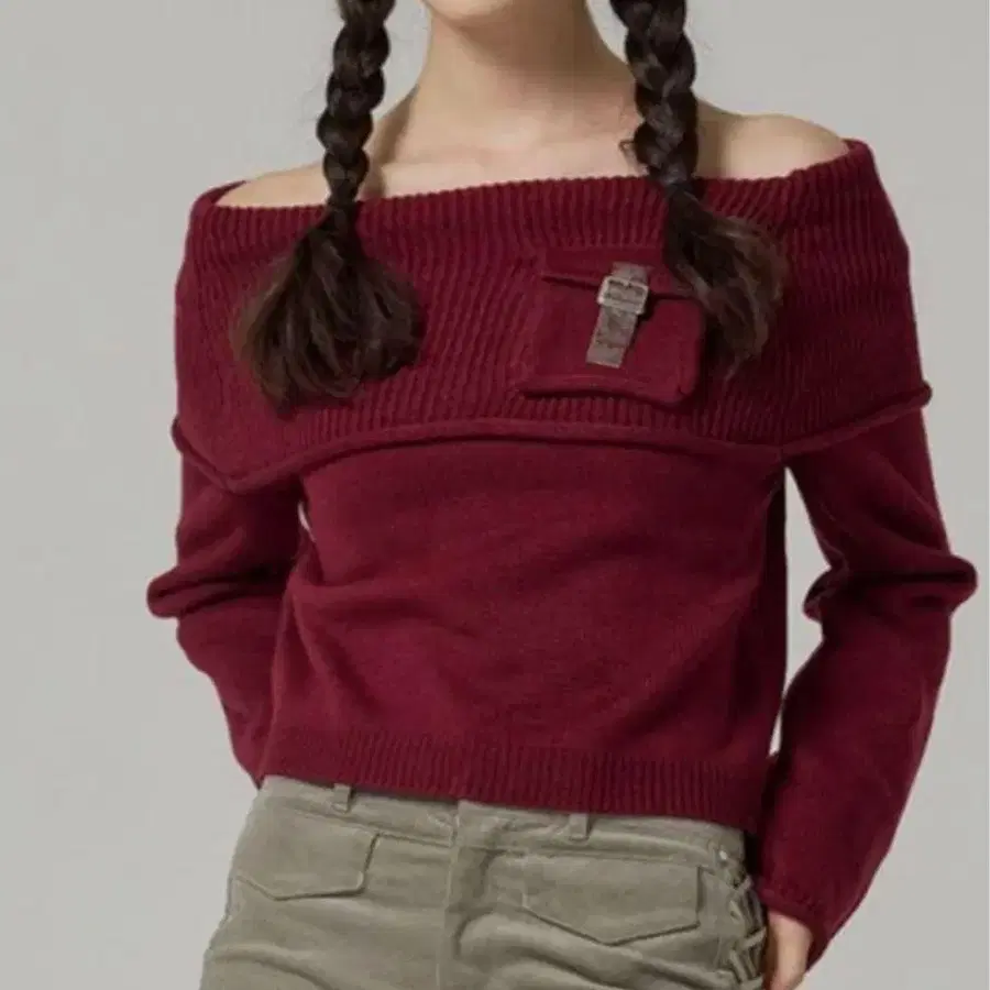 TINA:JOJUN 포켓 부착 오프숄더 니트