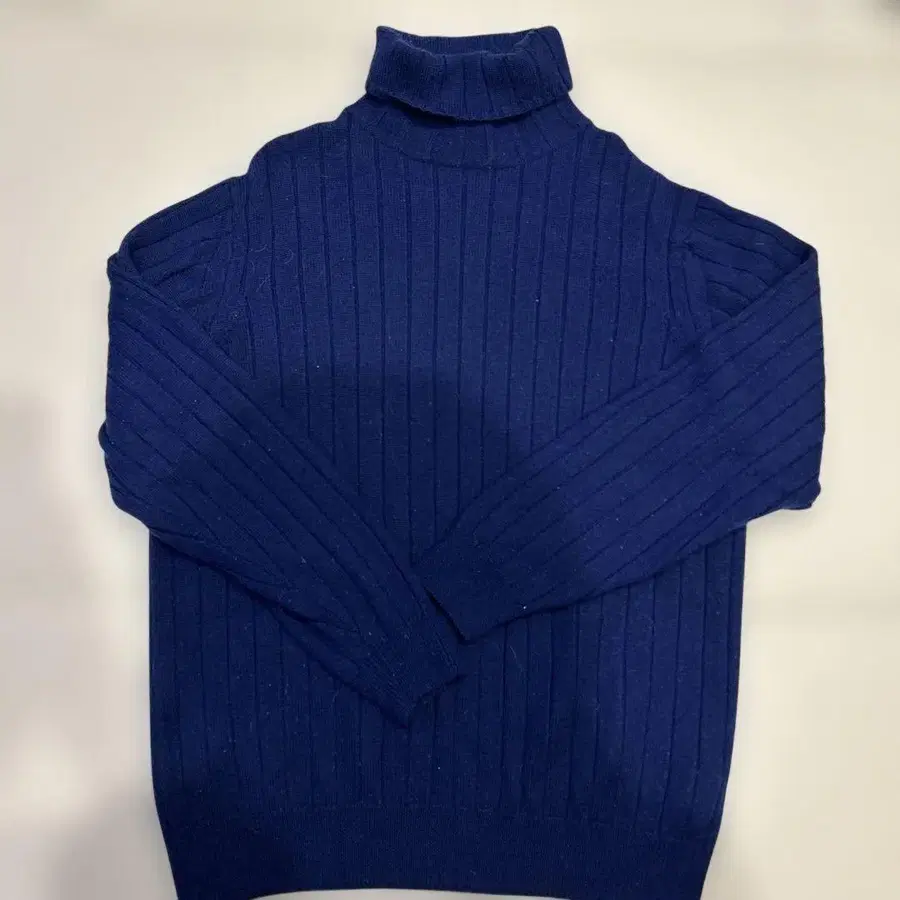 네이비 색상의 리브 터틀넥 스웨터, 사이즈 L.