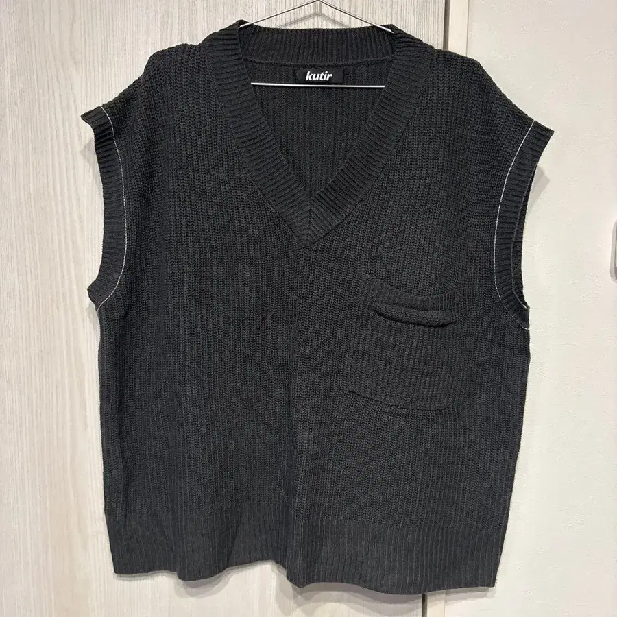 다크 그레이 V넥 슬리브리스 니트, 포켓이 있어 릴랙스한 스타일. 기장 69cm 가슴 너비 65cm 아크릴 100% - 브랜드: kutir - 색상: 다크 그레이 - 디자인: V넥, 슬리브리스, 포켓 부착 - 스타일: 릴랙스 핏 방문해 주셔서 감사합니다. 사이즈 - L