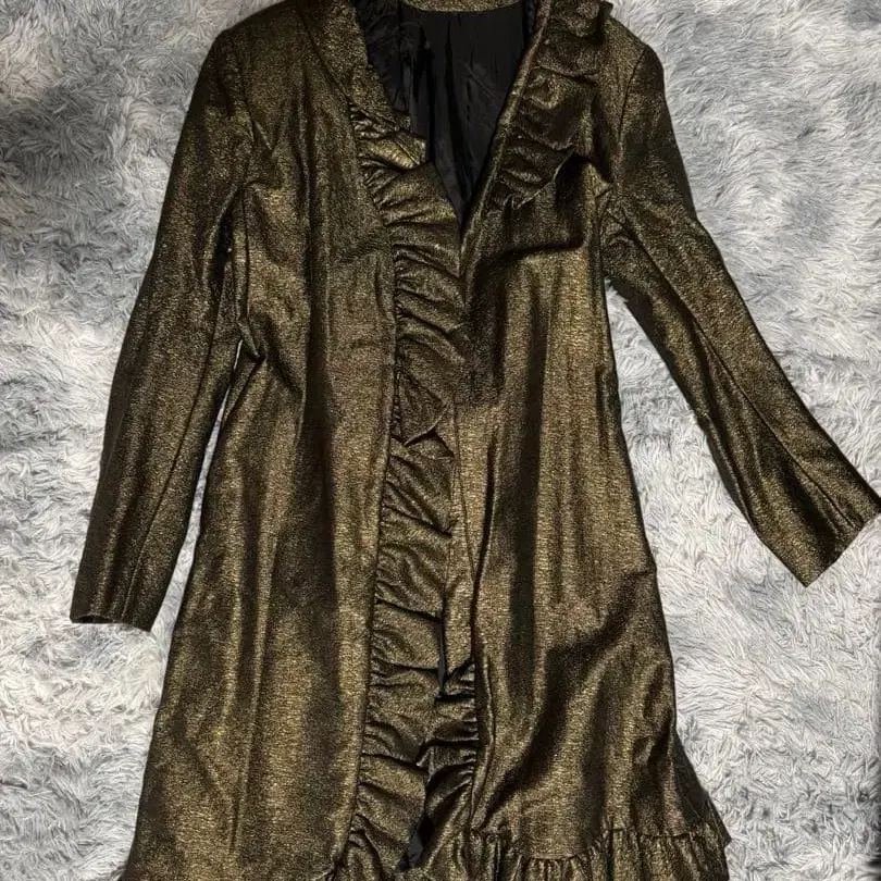 광택이 나는 골드 프릴 디자인으로 캐주얼한 스타일에 최적인 아우터. - 색상: 골드 - 디자인: 프릴 장식, 오픈 프론트 - 소재: 광택이 나는 원단 - 소매: 긴팔 - 스타일: 캐주얼 방문해 주셔서 감사합니다.