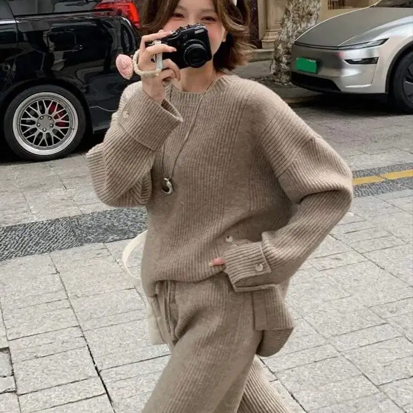 베이지 니트 소재로 사이드 슬릿 디자인의 캐주얼 셋업, 목걸이 포함. - 색상: 베이지 - 소재: 니트 - 디자인: 사이드 슬릿 포함 - 스타일: 캐주얼 - 액세서리: 목걸이 포함 방문해 주셔서 감사합니다. 사이즈 - S