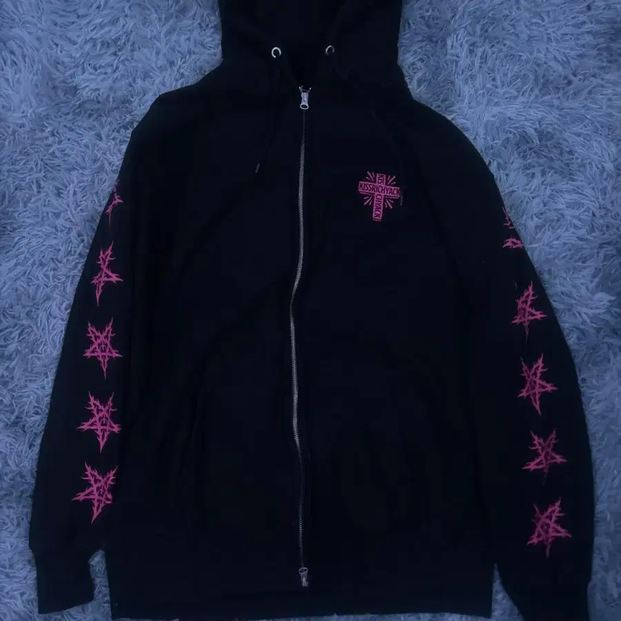 - 디자인: 앞면에 핑크 로고, 양쪽 소매에 핑크 별 패턴