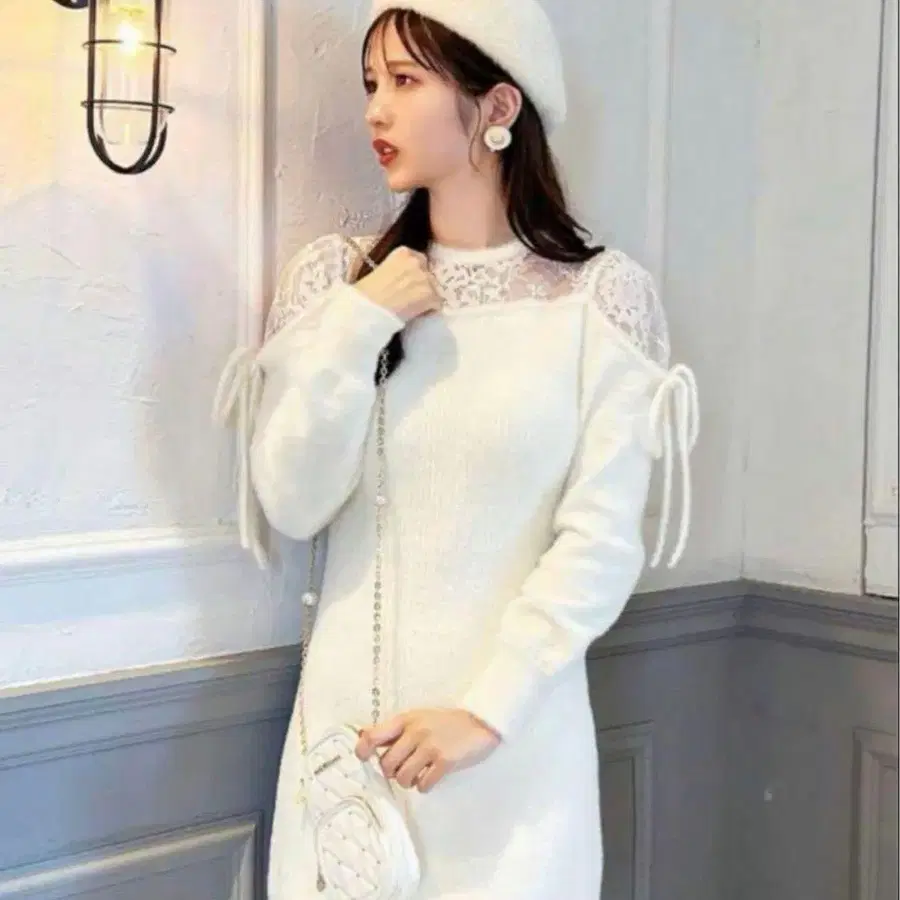 미셸 마카롱 레이스 니트 원피스