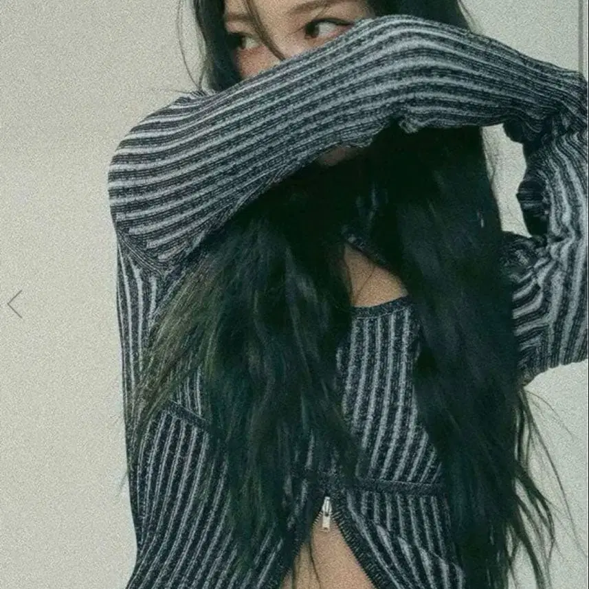 스트라이프 디자인의 터틀넥 니트, 컷 아웃으로 스타일리시.