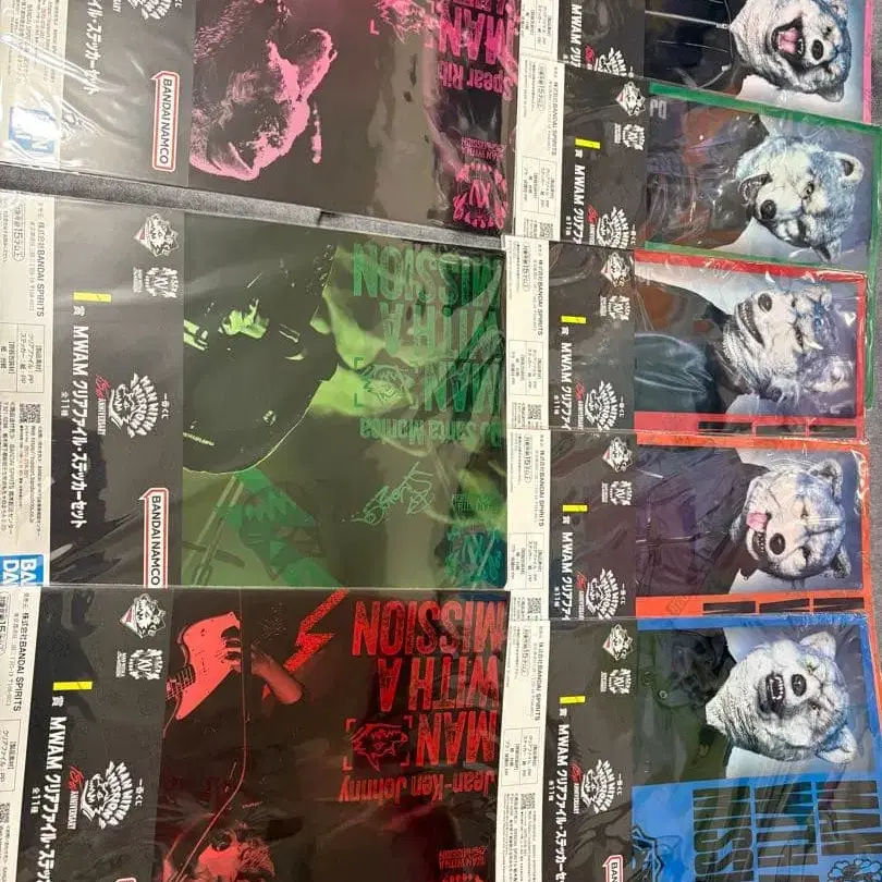 컬러풀한 디자인의 MAN WITH A MISSION 타월, 손수건, 키링 세트입니다.