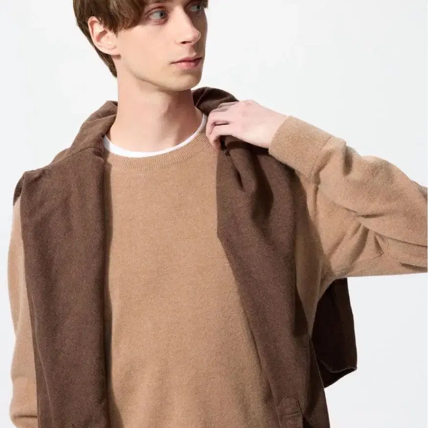 유니클로 남성용 캐시미어 크루넥 스웨터 내추럴