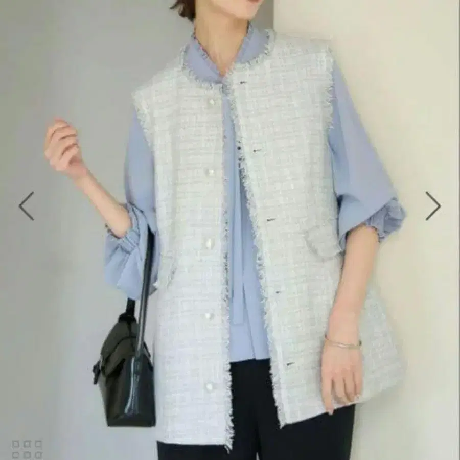블라우스, 팬츠 룩에 겉옷처럼 걸쳐 클래시컬한 외출 룩 완성.