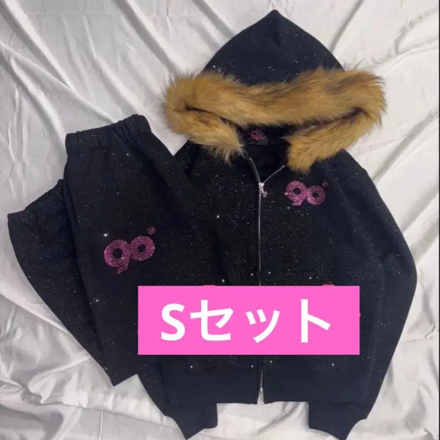 미사용 새상품입니다. 사이즈 S 세트 9090girl 90 Logo Glitter Fur Zip Hoodie 90 Logo Glitter Sweat Pants 사이즈 - S