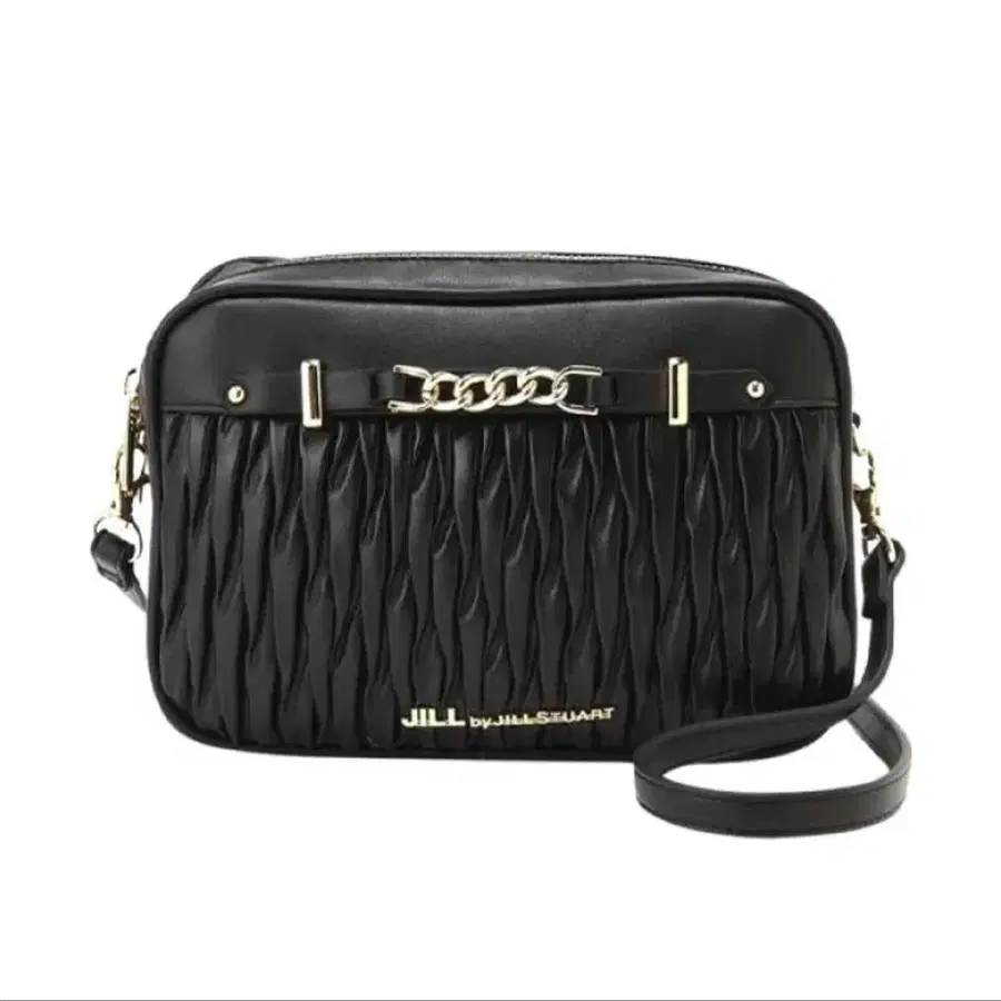플리츠 디자인의 블랙 숄더백, 조정 가능한 스트랩 포함.