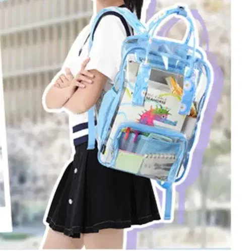 투명 포켓이 달린 캐주얼한 파란색 백팩. - 색상: 파랑 - 디자인: 투명 포켓 부착 - 스타일: 캐주얼 - 소재: 나일론 - 특징: 다기능 포켓 방문해 주셔서 감사합니다.