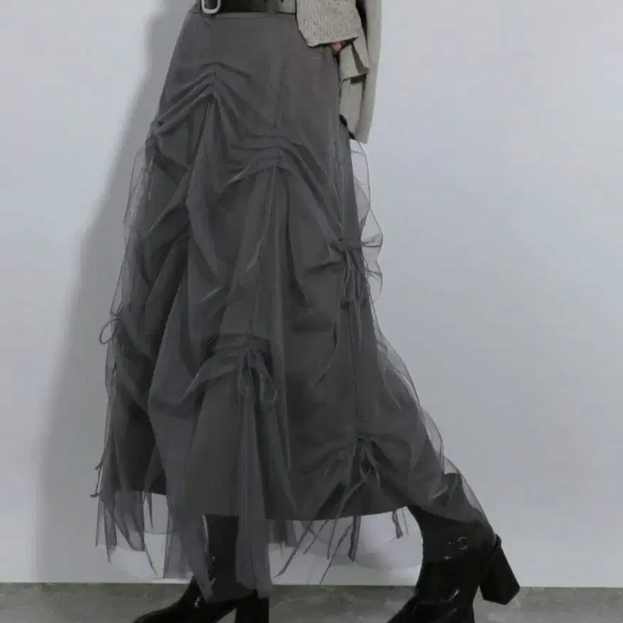 HARE의 튤 리본 턱 플레어 스커트 그레이 색상입니다.