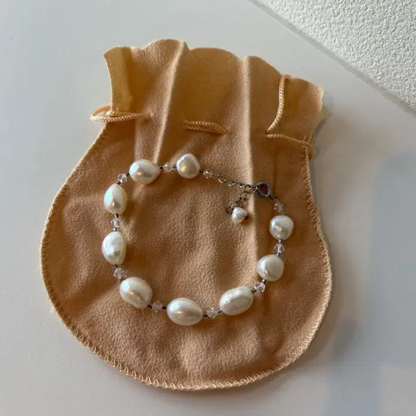 담수 진주를 사용한 엘레강트한 비즈 팔찌. - 소재: 담수 진주 - 색상: 화이트 - 디자인: 비즈 팔찌 몇 번 사용했습니다.