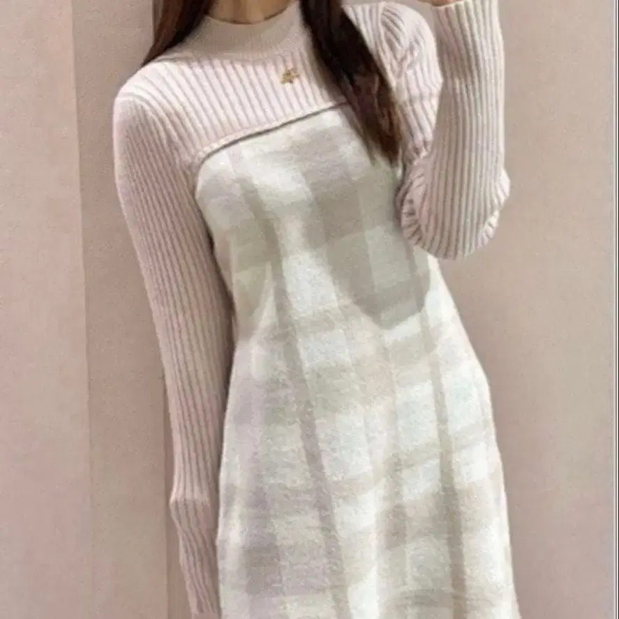 [ 새상품급 ] 미셸 마카롱 체크 니트 원피스 베이지