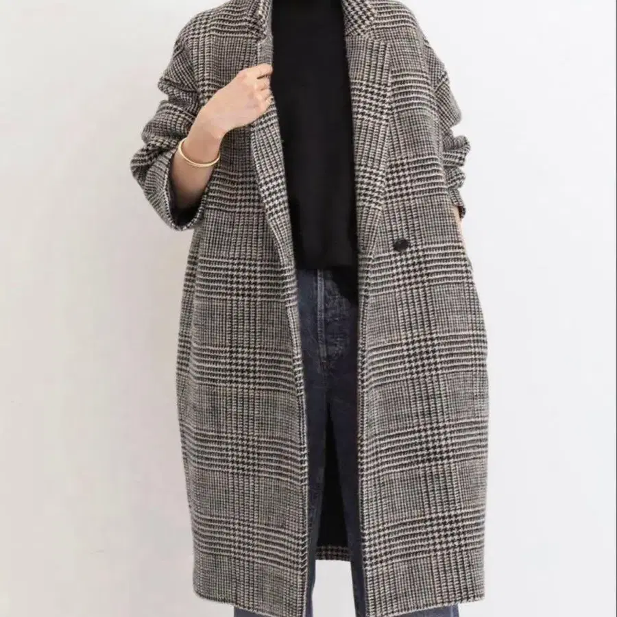 Link 곁길 볼륨 체크 코트