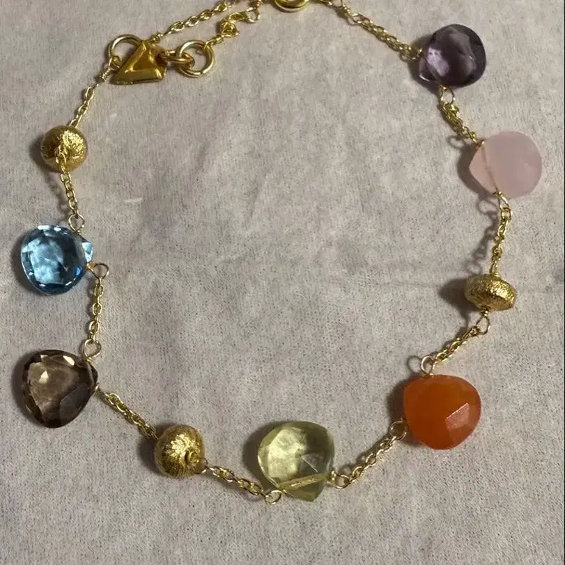 인도 주얼리 골드 도금 팔찌. - 소재: 골드 도금 - 스톤 종류: 자수정, 레몬 쿼츠, 로즈쿼츠, 블루 토파즈, 카넬리안, 스모키 쿼츠 마리 엘레나가 제작한 자이푸르에서 만들어진 팔찌입니다.
