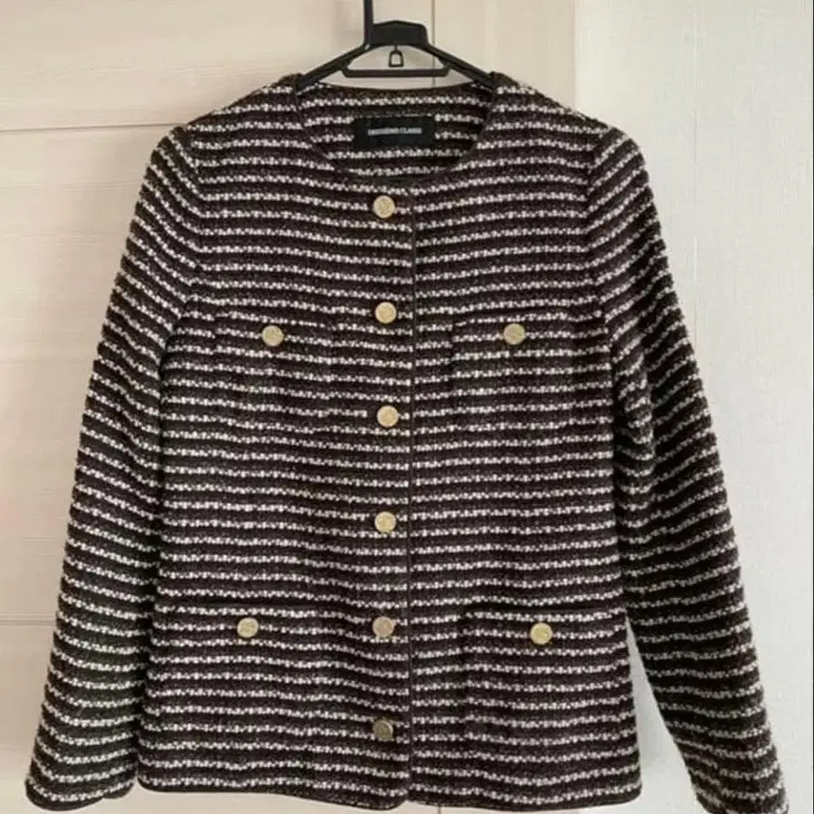 골드 버튼이 포인트인 멋스러운 트위드 자켓입니다. 숏 기장이라 팬츠나 스커트 모두와 코디하기 좋습니다. 올해는 트위드 자켓이 유행이라 바로 활용하기 좋습니다!