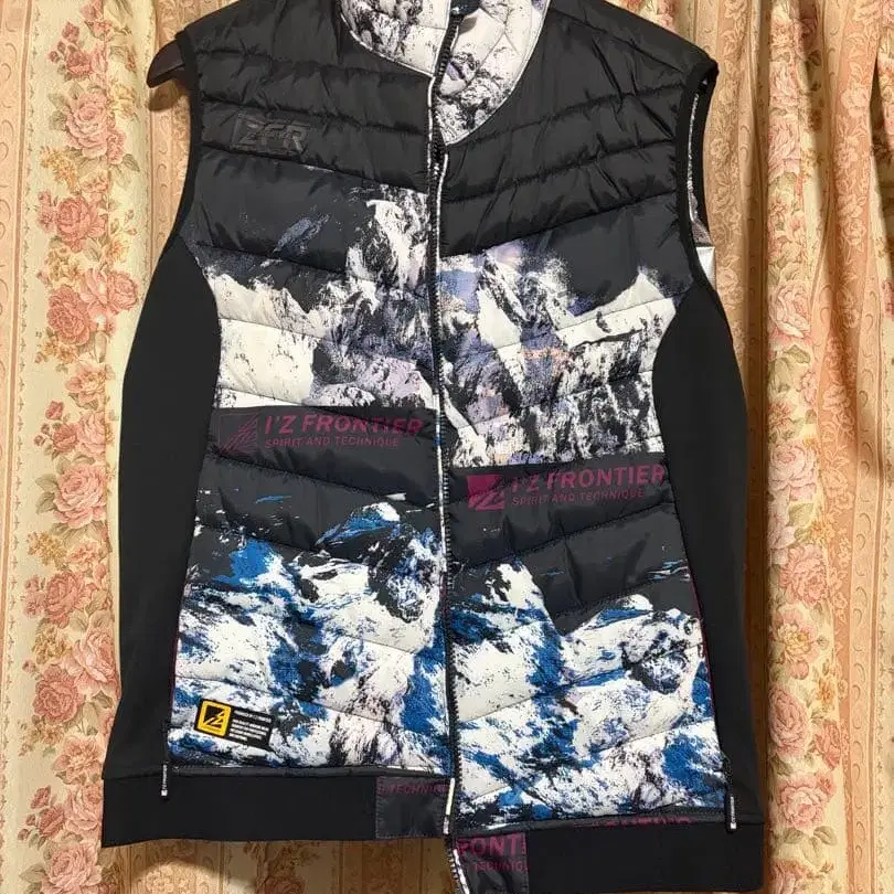 산악 풍경 프린트의 스타일리시한 다운 베스트. - 디자인: 산악 풍경 프린트 - 색상: 블랙/화이트/블루 - 스타일: 슬리브리스 - 지퍼: 전개 지퍼 - 브랜드명: Z FRONTIER 방문해 주셔서 감사합니다. 사이즈 - L