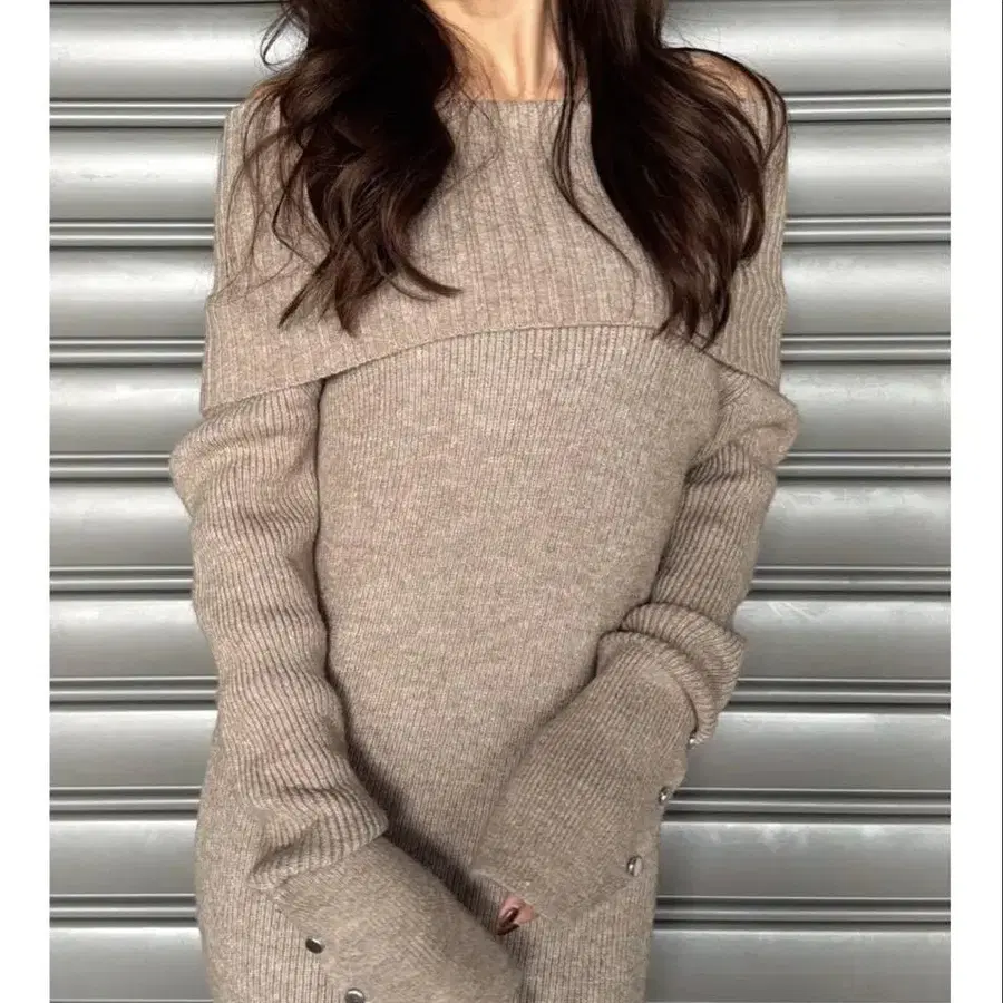 stylemixer 니트 롱 원피스 플레어 슬리브 리브 베이지