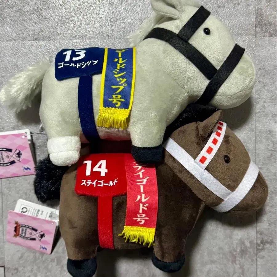 서러브레드 컬렉션 OK 봉제 인형 6종 중 스테이 골드와 골드십 2개 세트입니다.