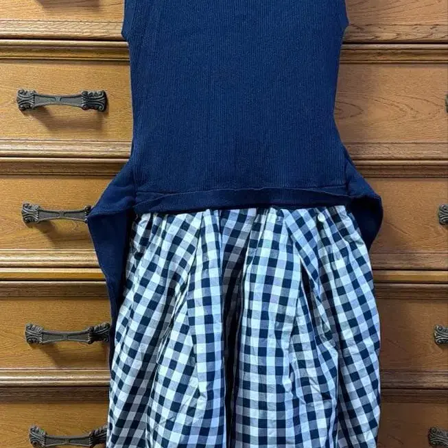 슬리브리스 네이비 탑과 깅엄 체크 무릎 기장 스커트가 특징인 원피스입니다. 약간 벌룬 디자인입니다. 시착만 한 상품입니다. - 색상: 네이비/체크 - 사이즈: 0 - 소재: 코튼 40%, 폴리에스테르 33%, 레이온 23%, 폴리우레탄 4% - 디자인: 슬리브리스, 무릎 기장, 깅엄 체크 방문해 주셔서 감사합니다. 사이즈 - 0