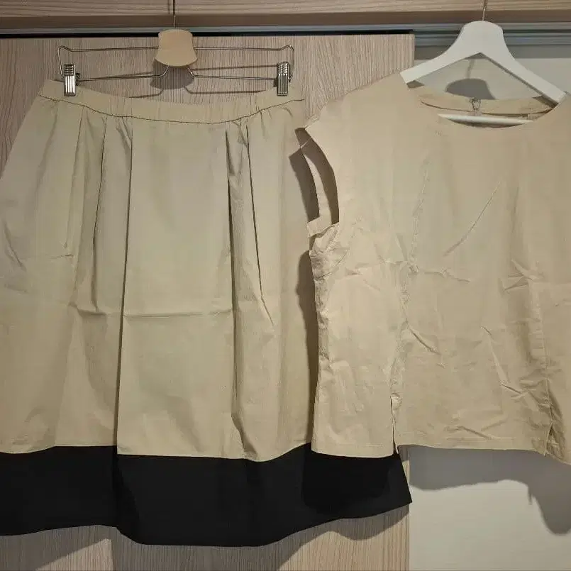 베이지와 블랙의 셋업 스커트와 상의