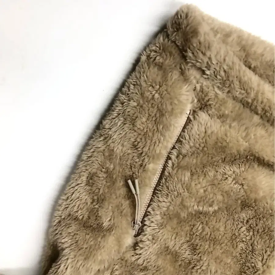 고 슬로우 캐러밴 후드 부착 베이지 플리스 자켓