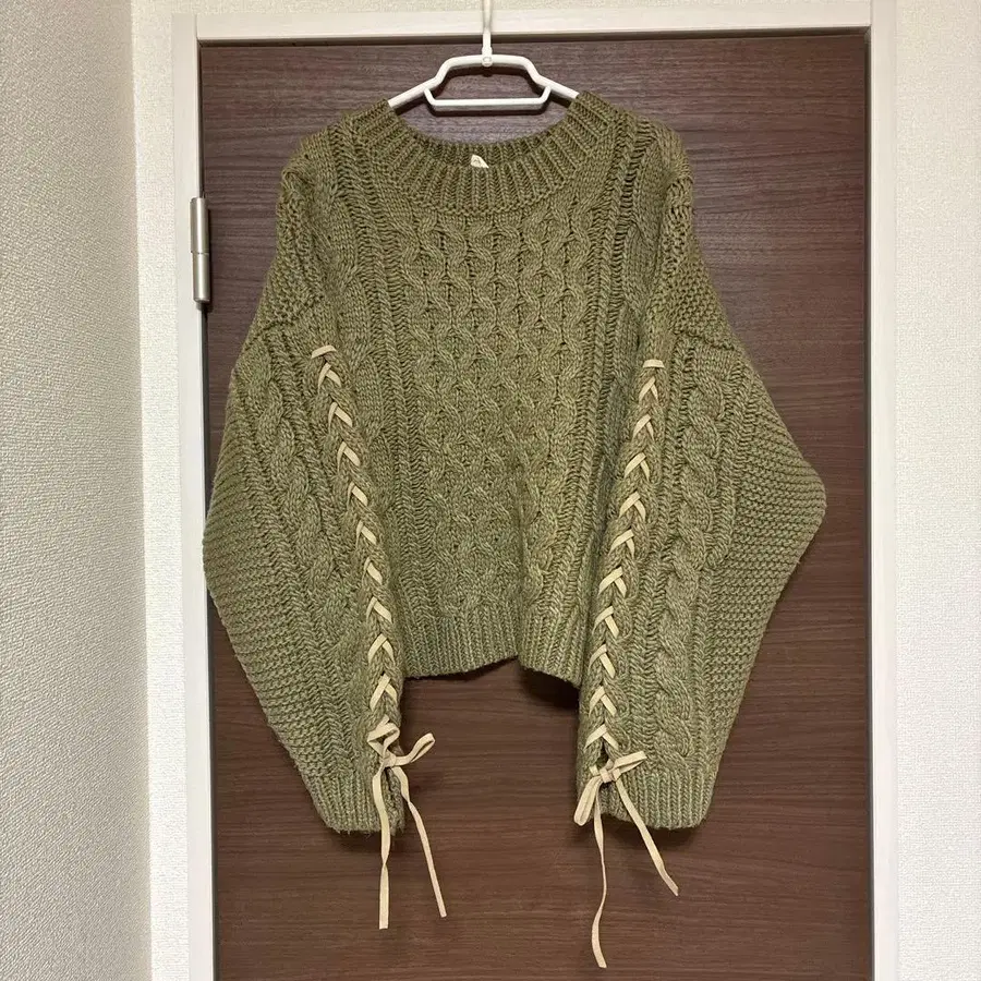 미사용 새상품. 1만 엔 정도에 구매했습니다. 한 번도 착용하지 않고 옷장에 보관하고 있었습니다. 매우 깨끗한 상태입니다. ※ 촬영 시에만 행거에 걸었습니다. 팔의 리본 디자인이 정말 귀엽습니다. 검토 부탁드립니다. - 색상: 올리브 그린 - 디자인: 케이블 니트 - 소매: 벌룬 슬리브 - 장식: 리본 포함 방문해 주셔서 감사합니다.