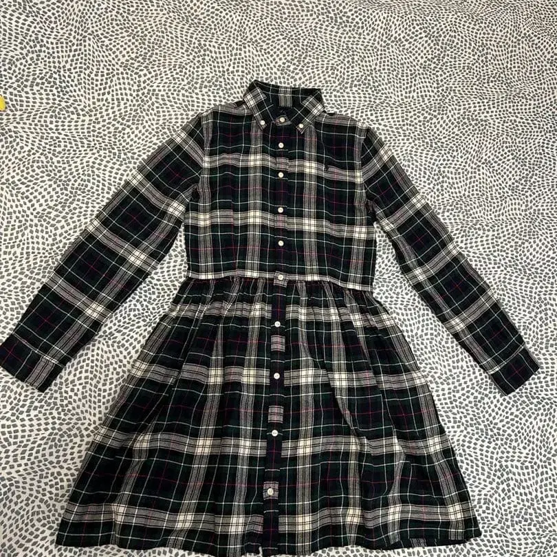 • 미사용 다크 그레이 체크 무늬 셔츠 원피스