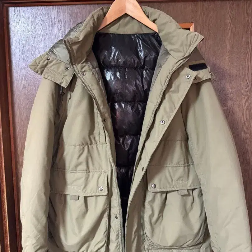 워크맨 카키 후드 부착 다운 자켓