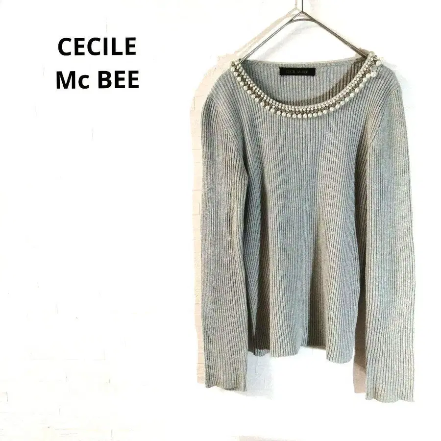 세실 맥비 긴팔 니트 그레이 펄 장식 캐주얼 M