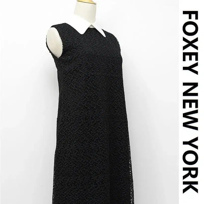 A394/새상품급 FOXEY NEW YORK COLLECTION 드레스 무릎 기장 슬리브리스 원피스 레이스 올 패턴 38 M 블랙