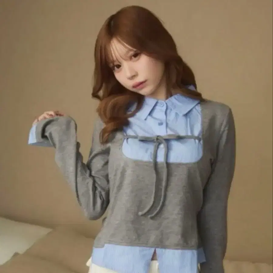 titty&co 스트라이프 셔츠 도킹 니트