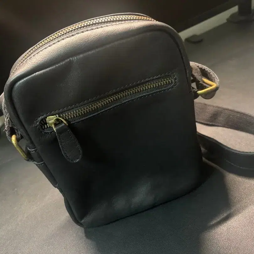 천연 가죽으로 제작되어 스스로 설 수 있을 만큼 튼튼한 구조입니다. 가죽의 질감이 좋습니다. 적당한 양의 짐을 수납할 수 있습니다. 사용할 기회가 없을 것 같아 판매합니다. 미사용에 가까운 상태입니다. - 색상: 블랙 - 소재: 가죽 - 지퍼: 골드 금장 장식 - 스트랩: 조정 가능한 숄더 스트랩 - 포켓: 전면 지퍼 포켓 방문해 주셔서 감사합니다. 색상 - 블랙 계열 소재 - 천연 가죽 얼룩, 찢김 등 - 없음