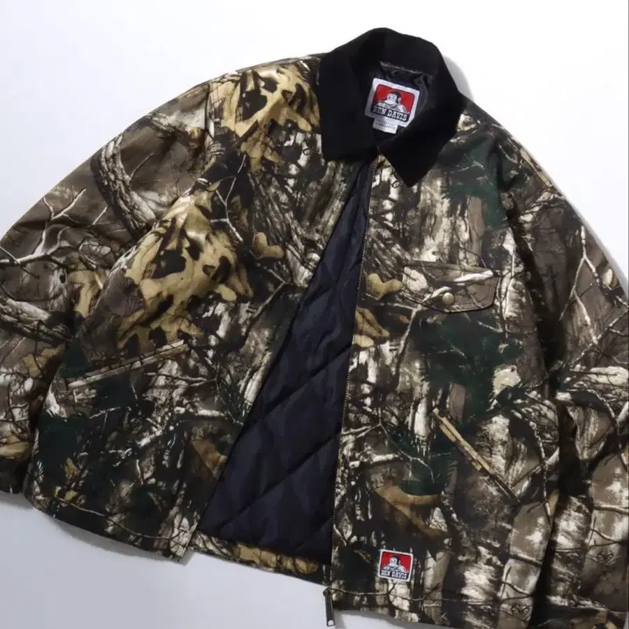 BEN DAVIS의 리얼트리 카모 무늬 워크 자켓입니다. 탄탄한 원단감에 안감은 퀼팅 처리되어 있어 다가오는 계절에 활약할 한 벌입니다. 프론트에는 브랜드 로고 와펜이 장식되어 있습니다.